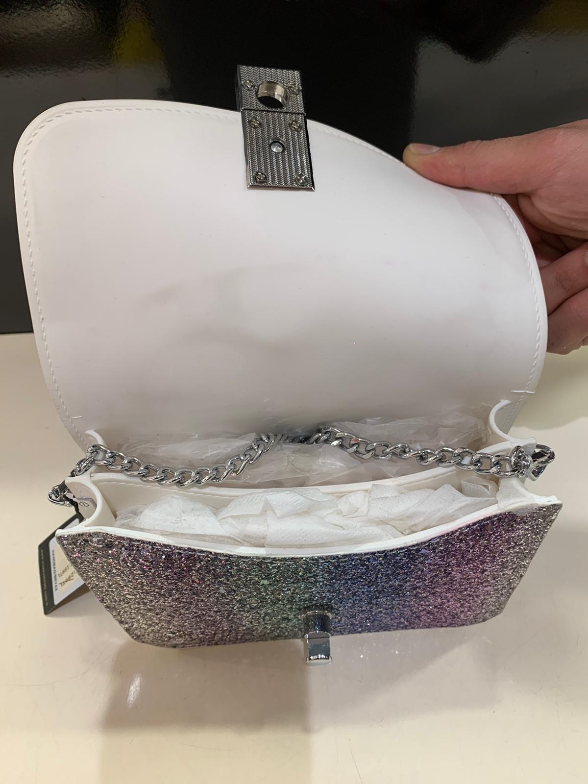 • Silver-tone statement hardware